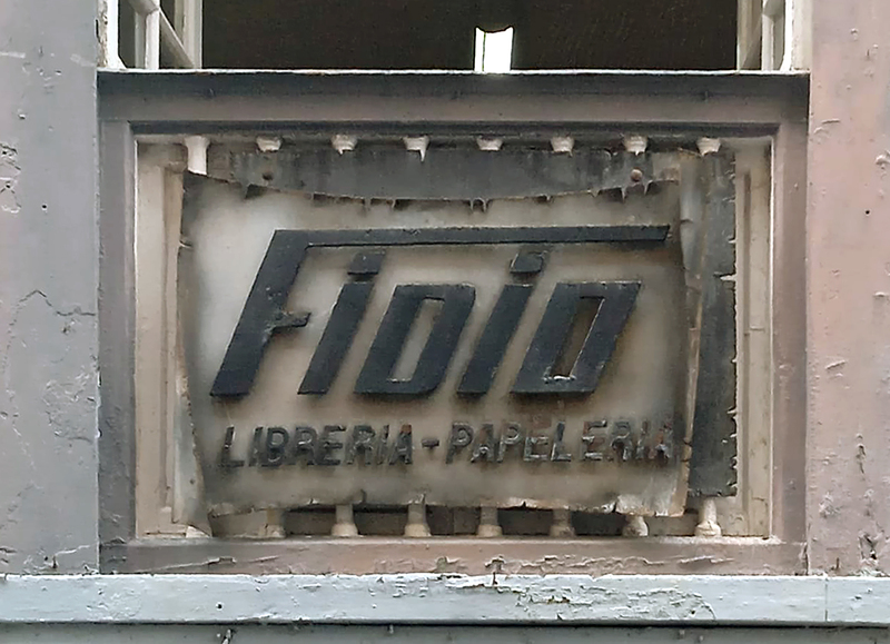 <p>Cartel con dise&ntilde;o del propio <strong>Fidio L&oacute;pez</strong>, propietario de la librer&iacute;a - papeler&iacute;a, y elaborado por el alumnado del ciclo superior de la especialidad de forja art&iacute;stica de la <em>Escuela de Arte Manolo Blahnik</em>&nbsp;del curso 1992-1993.&nbsp;As&iacute;, bajo la direcci&oacute;n del profesor <strong>Isidro de la Cruz Lorenzo</strong>, los alumnos realizaron un panel en bronce con las letras superpuestas en negro.&nbsp;</p>