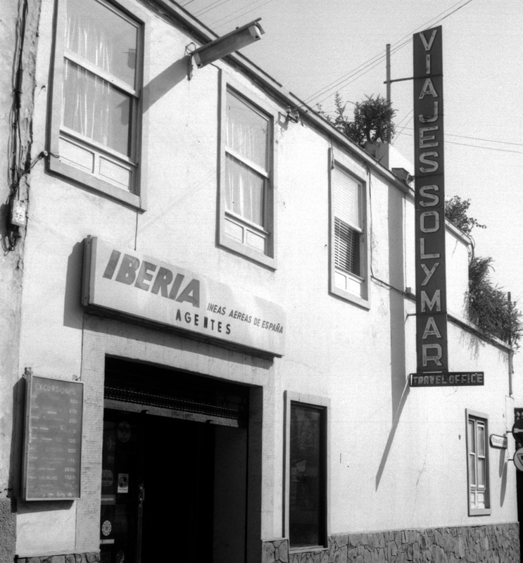 Agencia de viajes pionera en el Puerto de la Cruz que actuaba como oficina de excursiones y venta de billetes aéreos. Adscrita como agente oficial de IBERIA, ofrecía un sistema gráfico atractivo compuesto por rótulo perpendicular vertical y caja luminosa horizontal con el logotipo oficial de IBERIA. El conjunto refleja la importancia del turismo organizado y la aviación comercial en el paisaje urbano portuense de los años 60.